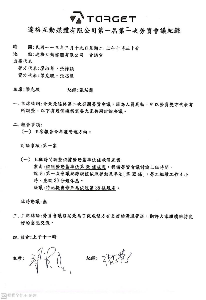 達格互動媒體有限公司第一屆第二次勞資會議紀錄20240319